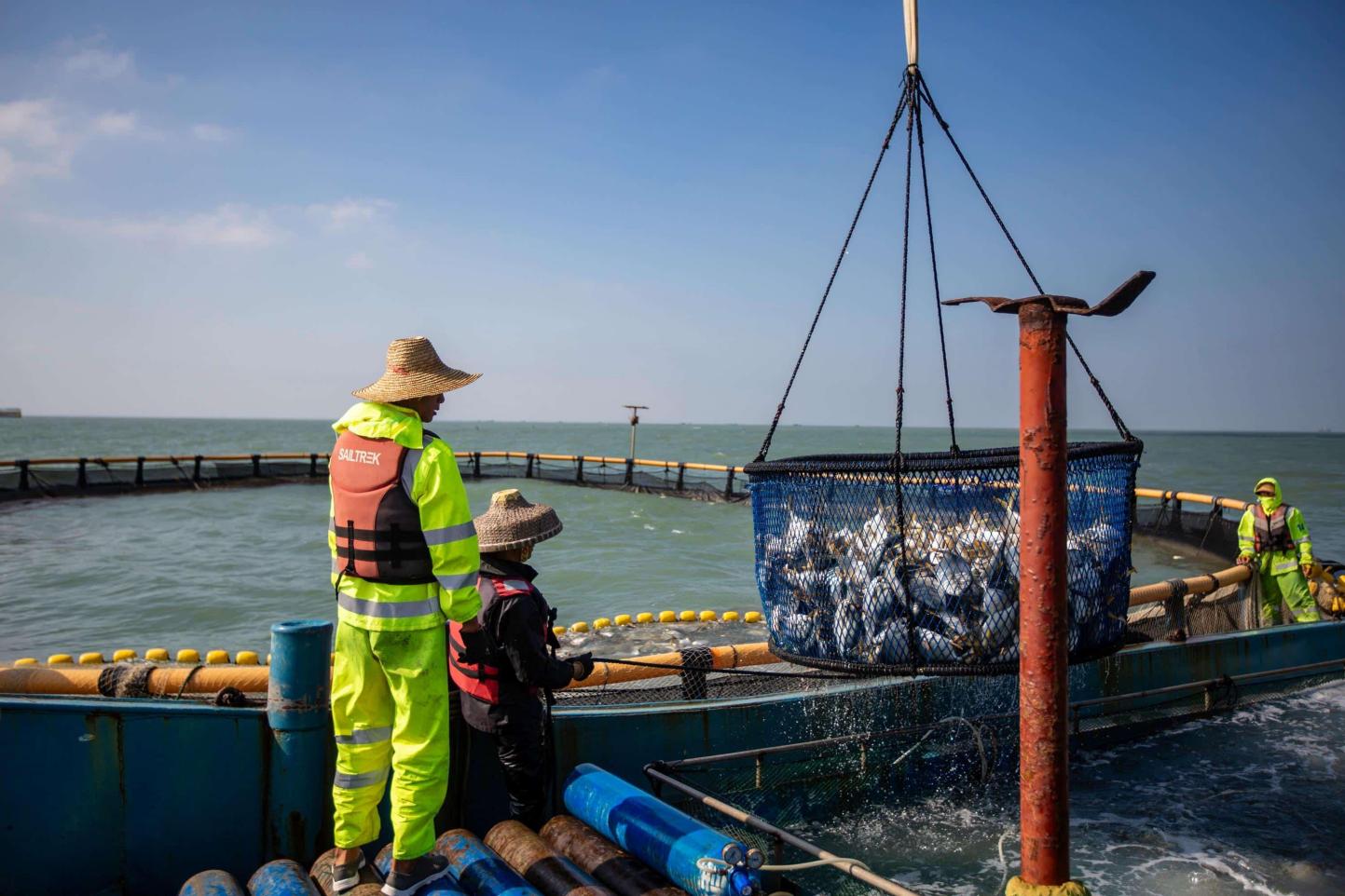 网箱框架制造安装施工队和深海网箱养殖基地等。